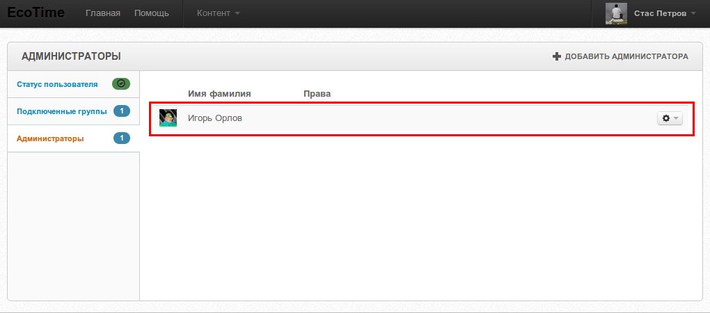 Важно заметить, что давать права доступа к сообществу может только пользователь, зарегистрировавший данное сообщество в EcoTime. То есть пользователи, которых Вы сделали администраторами в Ecotime, не смогут добавлять новых администраторов в Ваше сообщество в Ecotime.