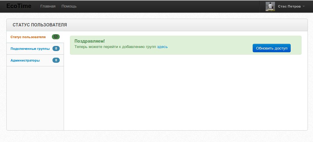 В любой момент всегда можно быстро проверить доступ к приложению Ecotime и убедиться в том, что все активировано и работает. Для этого нажмите кнопку “проверить доступ”.