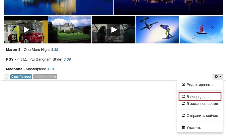 Для добавления одного поста в очередь нажмите на шестеренку в меню поста, далее "В очередь", и пост будет перемещен в конец очереди. Также посты можно добавлять “оптом”, для этого отметьте нужные посты, либо нажмите выделить все и отправьте их в очередь.